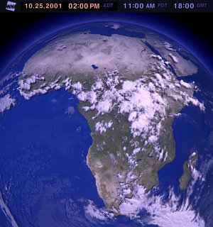 A satellite photograph of the African continent is seen on the left, while a map of Laura's route appears on the right. |