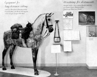 displayed at the 1956 Olympics. Her saddle is resting on a dummy horse,