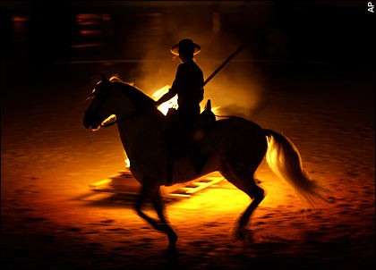 Quick to perceive the possible danger our camp was in, the Indian at once galloped up, and with the assistance of I’Aria and Storer, set about making a “contra-fuego” or counter-fire, that is to say, they gradually set fire to the grass all around the camp, letting it burn a considerable tract, but always keeping it well in subjection, beating it out with bushes and trampling it under foot, so that it could not get beyond their control. This precautionary measure was fortunately completed by the time the big fire came on, and, although, for a minute or two, they were half suffocated by the smoke, the fire passed harmlessly by the camp itself.