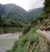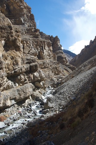 The mules waited patiently in the middle of this river bed, while Daniel scouted ahead. Unfortunately the trio nearly lost their lives on a cliff side soon after this photo was taken. |