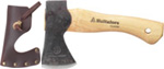 "Trekking axe Mini" - can be worn on a belt. Weighs 0.5 kg. (about a pound) without the handle. Recommended by a former French Foreign Legionnaire as "a good axe with many uses." Made in Sweden by Hultafors. |