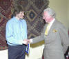 Ure, KCMG, LVO, FRGS (right) congratulates Australian adventurer Tim Cope on