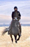 Russian Long Rider Carries Guild Flag to the Arctic Circle A Guild flag that crossed the United States with an American Long Rider is now on its way to the Arctic Circle with a Russian Long Rider. This is a perfect example of the Guild's philosophy of equestrian brotherhood. Chinese born Long Rider Jing Li previously rode solo across Russia, Siberia and on to Peking. He then rode the length of the Great Wall. Jing Li is now carrying the LRG flag from the Caucasus Mountains to the Arctic Circle. |