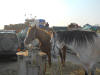 Having arrived early, Billy and Christy were lucky to find the immense flat-topped barges still empty. Because deck space would be severely limited, there was no room to construct a pen. After a load of sand was dumped on the deck for footing, the horses were tied side by side to an immense steel fitting atop the deck. The Long Riders, meanwhile, pitched their small tent on a nearby steel container. Christy and Billy ate fresh fish, while the horses dined on papyrus leaves harvested from the Nile river bank.