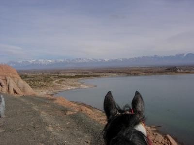 ![]() Swiss Long Rider André Fischer and his gelding, Corazon, consider the Andes mountains waiting up ahead in 2006 |