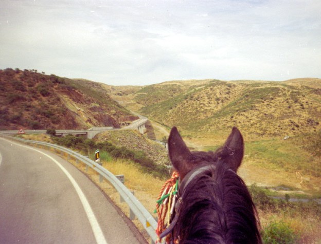 ![]() Austrian Long Rider Margit Rumpl and her stallion, Gallipolis, travelled from Austria to Spain in 2006. |