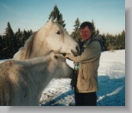 | Hans-Juergen Gottet with the Arab stallion and mare which he and his wife Claudia rode from Saudi Arabia to the Alps. | |