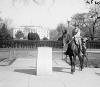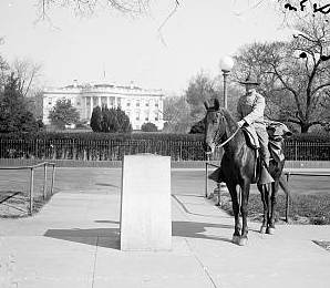 | Frank Heath was the first Long Rider to record the danger of ticks. In his book, “Forty Million Hoof Beats,” Heath recalled how he set off in 1925 to ride to all 48 American states. After more than 10,000 miles on the road he unknowingly rode into what was known as “an outlaw parish” in Louisiana. The entire county was so severely infested with disease-bearing ticks that the US government imposed a strict quarantine making it illegal for local residents to travel with their horses or take their animals off local farms. Having travelled so far, Heath pleaded with the government to allow him to complete the historic journey. He was eventually permitted to leave on the condition that he agreed to subject his mare, Gypsy Queen, to a severe anti-tick bath at a government facility. There she was immersed in a powerful liquid, then placed under strict quarantine for a week. After a careful full-body inspection, Gypsy Queen was given a tick-free certificate by a federal inspector, then immediately transported inside a sealed train car across the Mississippi River into tick-free territory. This image shows Frank and Gypsy Queen outside the White House in Washington DC on the concluding day of their 11,000 mile journey. |