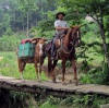 With the exception of mosquitoes, ticks pose the greatest danger to humans and horses, as they transmit a number of fatal diseases. Though only measuring 1 mm (3/64ths of an inch), ticks are ruthlessly successful predators that are capable of selecting ambush sites based upon their ability to distinguish well-travelled trails. Thanks to special sensory organs which allow them to detect the carbon dioxide emitted by horses and humans, they can sense the approach of their victims from a great distance. They take up a position on overhead branches or in tall grass and then wait for dinner to arrive. After they drop onto their unsuspecting host, they bury their head into the body and begin feeding on its blood. Their bites often go undetected because the tick injects an anaesthetic to deaden the injury. Thus, many victims remain unaware that they have been bitten. Once they are attached, a tick will feed for up to a week. At first it may resemble a small beige-coloured pea. Eventually the tick will become so bloated with blood that it resembles a child’s swollen thumb. Long Rider Ria Bosman reported that, during her journey through Africa, “Ticks swarmed over everything like black rain. At night when we got to bed, we had to examine each other by torch light and pull off ticks. Sometimes we removed as many as fifty from each other.” |