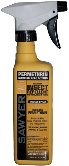 DEET, at 20 % concentration, is considered the “gold standard” in repellent sprays for humans, highly effective against ticks. Repellents with the ingredient picaridin, at 20% concentration, is thought to be a safer equivalent, approved in the U.S. in 2005 but used widely in Europe since the 1980’s. Another alternative is to spray or soak clothing, hats, boots and camping gear with permethrin, an effective insecticide which kills ticks on contact.