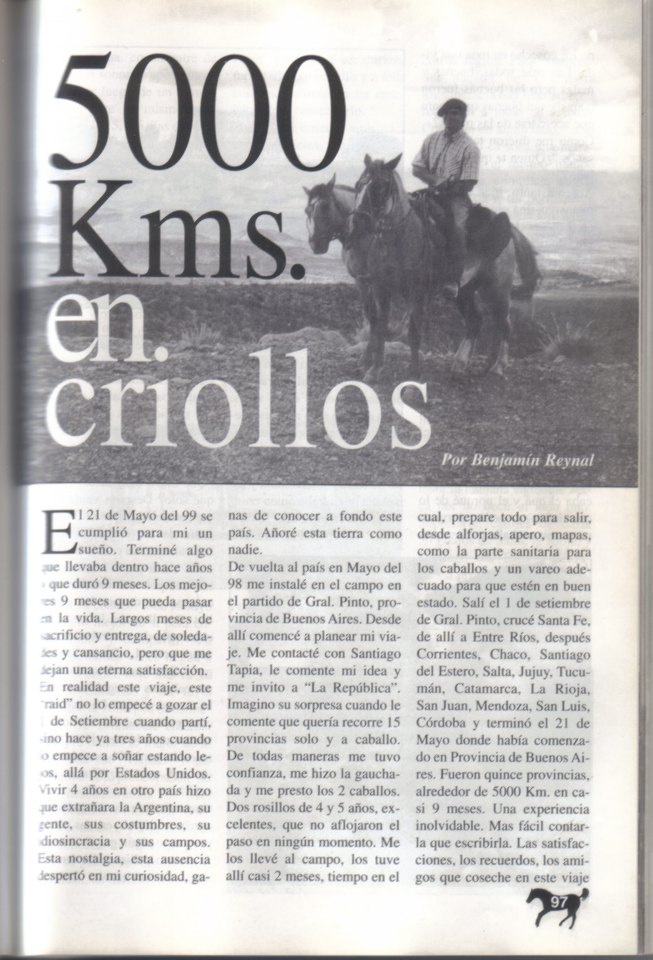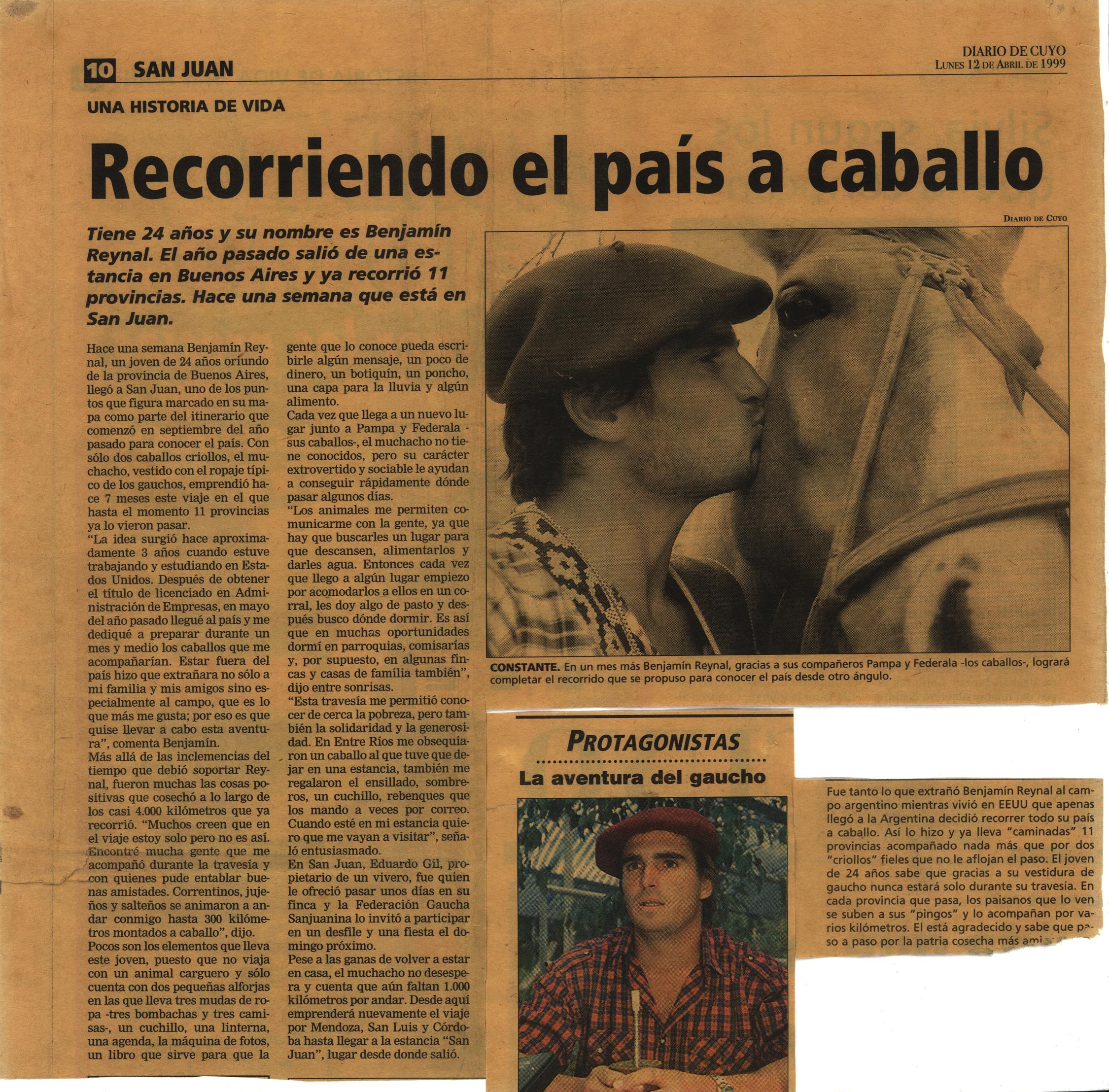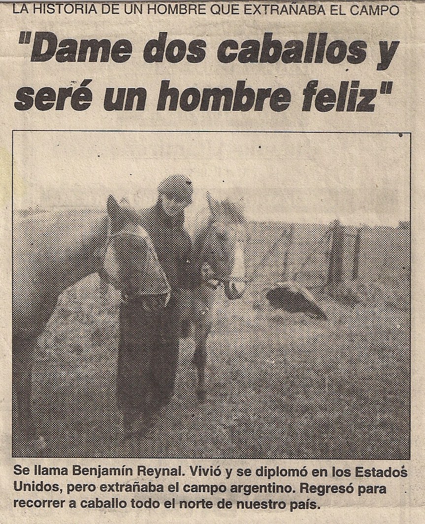 Articles about Benjamin Reynal's Long Ride in Argentina.
