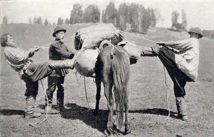 While short stirrups and chop sticks are well known, what is seldom remembered is that different pack saddle systems developed on opposite sides of the planet. Before I explain why it differs, allow me to clarify how the more recognizable Western pack saddle came into being.