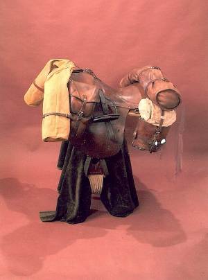 The famous cavalry saddle owned by Swiss Long Rider, Captain Otto Schwarz. It was made in 1916 and saw service during both World Wars, after which Captain Schwarz used it to ride 48,000 kilometers on five continents. |