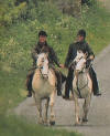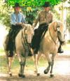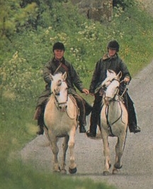 Founder Members of The Guild, Louella and Robin Hanbury-Tenison on their Camargues, Tiki and Thibert, that they rode from the Mediterranean to Cornwall |