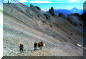 The nearest bear stood up, rocking back and forth to get a better look. We looked at each other – what to do? We turned the horses around and inched back slowly, keeping the grizzly and his companions in sight.