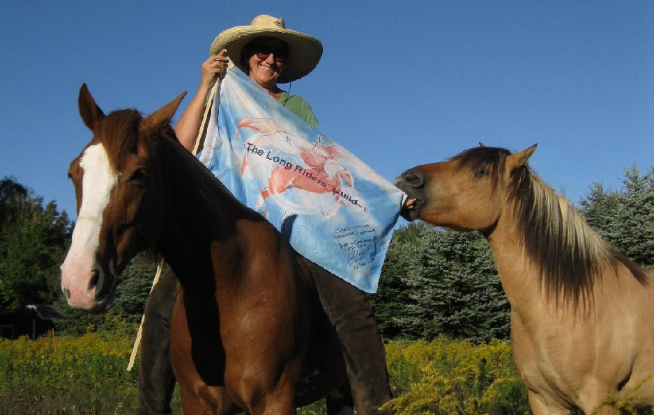 Bernice Ende has ridden 35,500 kilometres (22,000 miles) during seven consecutive journeys in the United States and Canada. Her current trip will cover 8,000 miles and take more than two years to complete. What makes this ride unique is that Bernice is attempting to become the first person to ride "ocean to ocean" in both directions, and reach both oceans, on the same trip. On October 8th Bernice’s horse, Essie Pearl carried the Long Rider and the Guild flag to the Atlantic, thereby completing the first part of this historic journey!