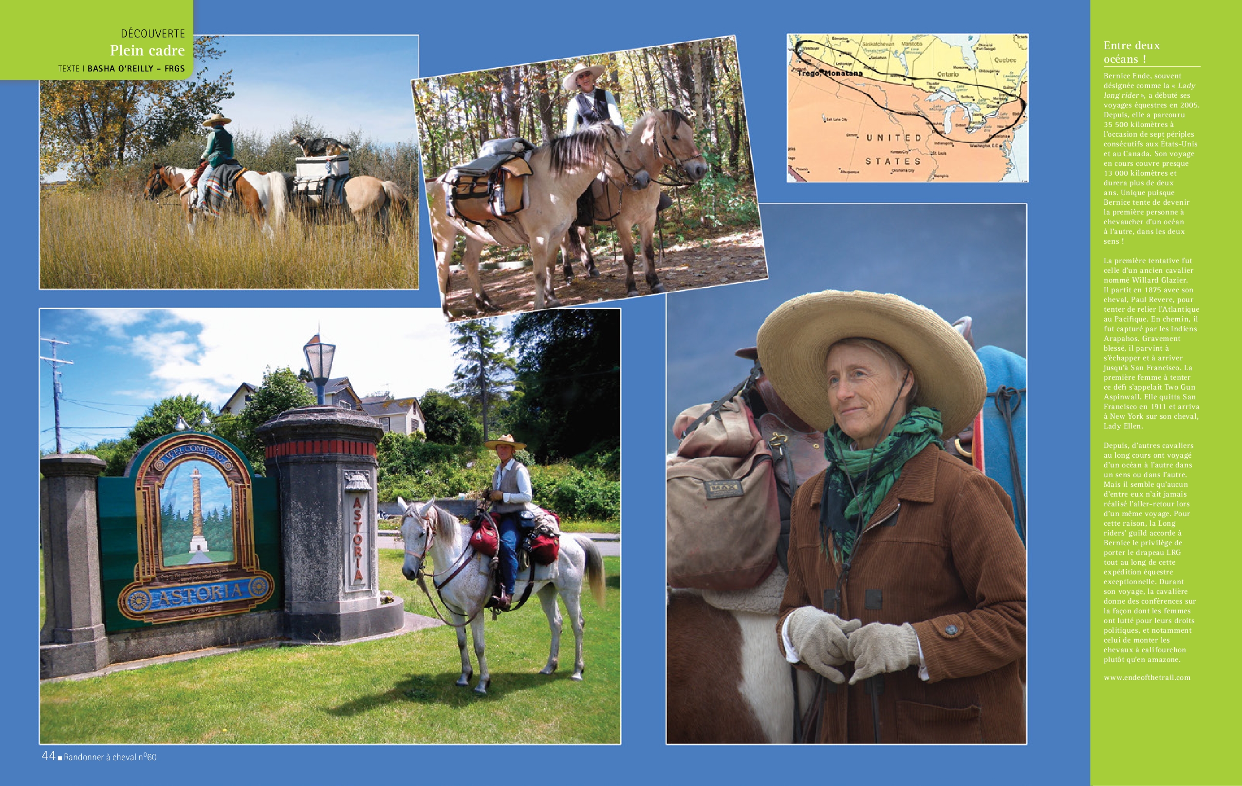 In the Footsteps of a Heroine A 1950s journey across the United States inspired a young horsewoman who made an 'ocean to ocean' journey in 2012. Dans les pas d’une héroïne Un voyage réalisé à travers l’Amérique a inspiré une jeune cavalière qui s’est lancée, en 2012, dans un voyage de l’océan à l’océan