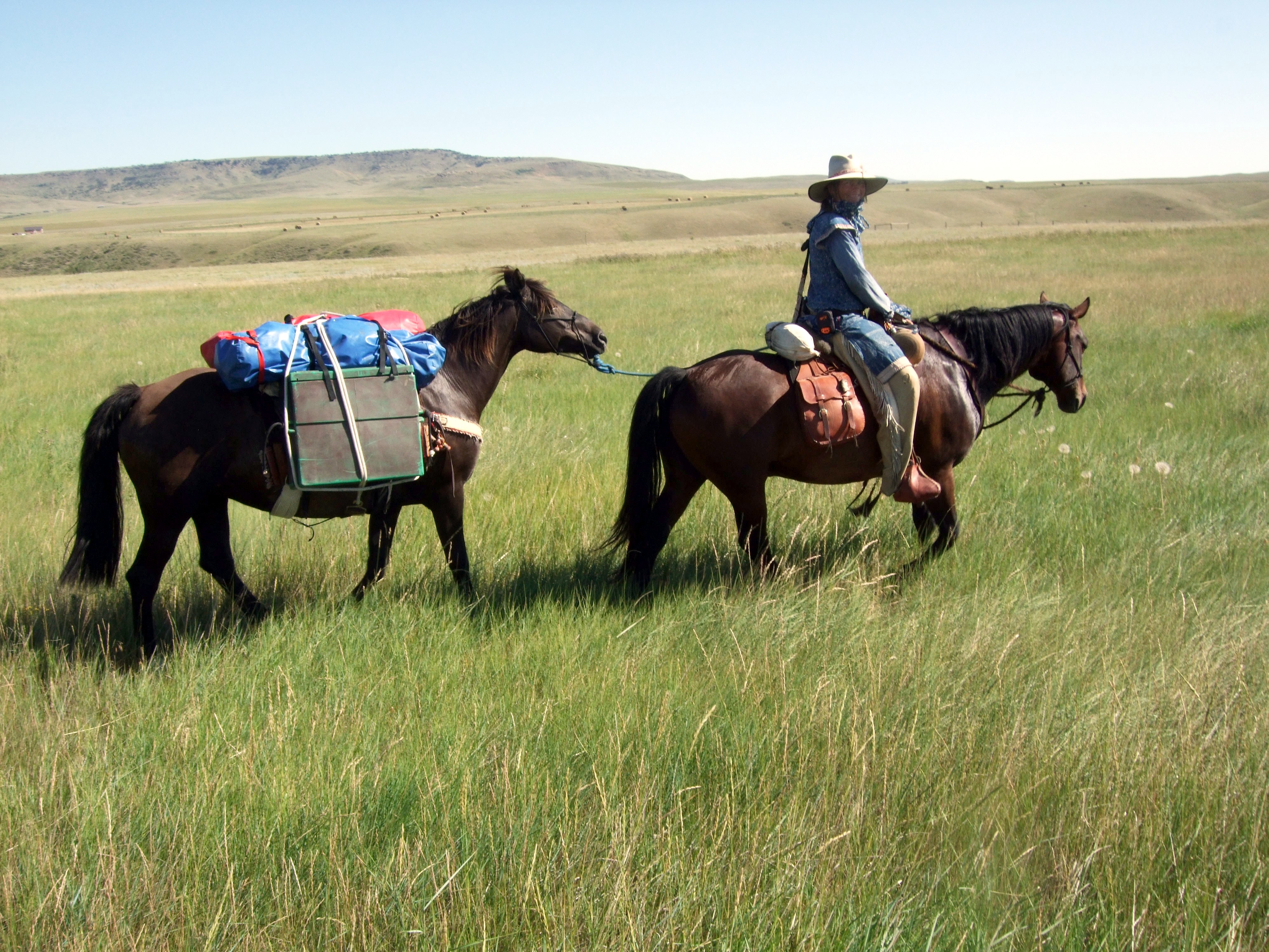 The key to equestrian travel, the Pack HorseAfter having completed his incredible 18,000 mile solo equestrian journey around the entire perimeter of the Australian continent, Long Rider Steve Nott made this apt observation about one of the most commonly misunderstood aspects of equestrian travel, the necessity of using a pack horse. “Hollywood would have us believe the erstwhile western hero can travel for weeks on end, all the while covering hundreds of miles with just his saddle bags and a blanket. All too often when night arrives the cinematic rider has mysteriously produced a coffee pot, frying pan and enough food to fabricate a hearty evening meal. In fact even a brief list of camp necessities, let alone the food, soon makes it apparent one needs a pack horse and pack saddle,” Nott warned other travellers. Le Clé du Voyage Equestre: le cheval de bât Dans l’édition 59, j'ai avisé la difficulté de trouver un bon "cheval de route". Trouver un bon cheval de bât est encore plus difficile ! Après avoir terminé son incroyable voyage équestre d’environ 29.000 kilomètres autour du périmètre du continent australien, Long Rider Steve Nott fait cette observation pertinente à propos de l'un des plus couramment incompris d’un aspect de voyage équestre, la nécessité de l'aide d'un cheval de bât. "Hollywood voudrait nous le faire croire les anciens héros de l'ouest peuvent voyager pendant des semaines, tout en couvrant des centaines de kilomètres avec juste ses sacoches et une couverture. Trop souvent quand la nuit arrive, le cavalier cinématique a mystérieusement produit une cafetière, une poêle et assez de nourriture pour fabriquer un copieux repas du soir. En fait, même une brève liste de camp nécessités, sans parler de la nourriture, c’est évident qu’on a besoin d'un cheval de bât," Nott averti d'autres voyageurs. |