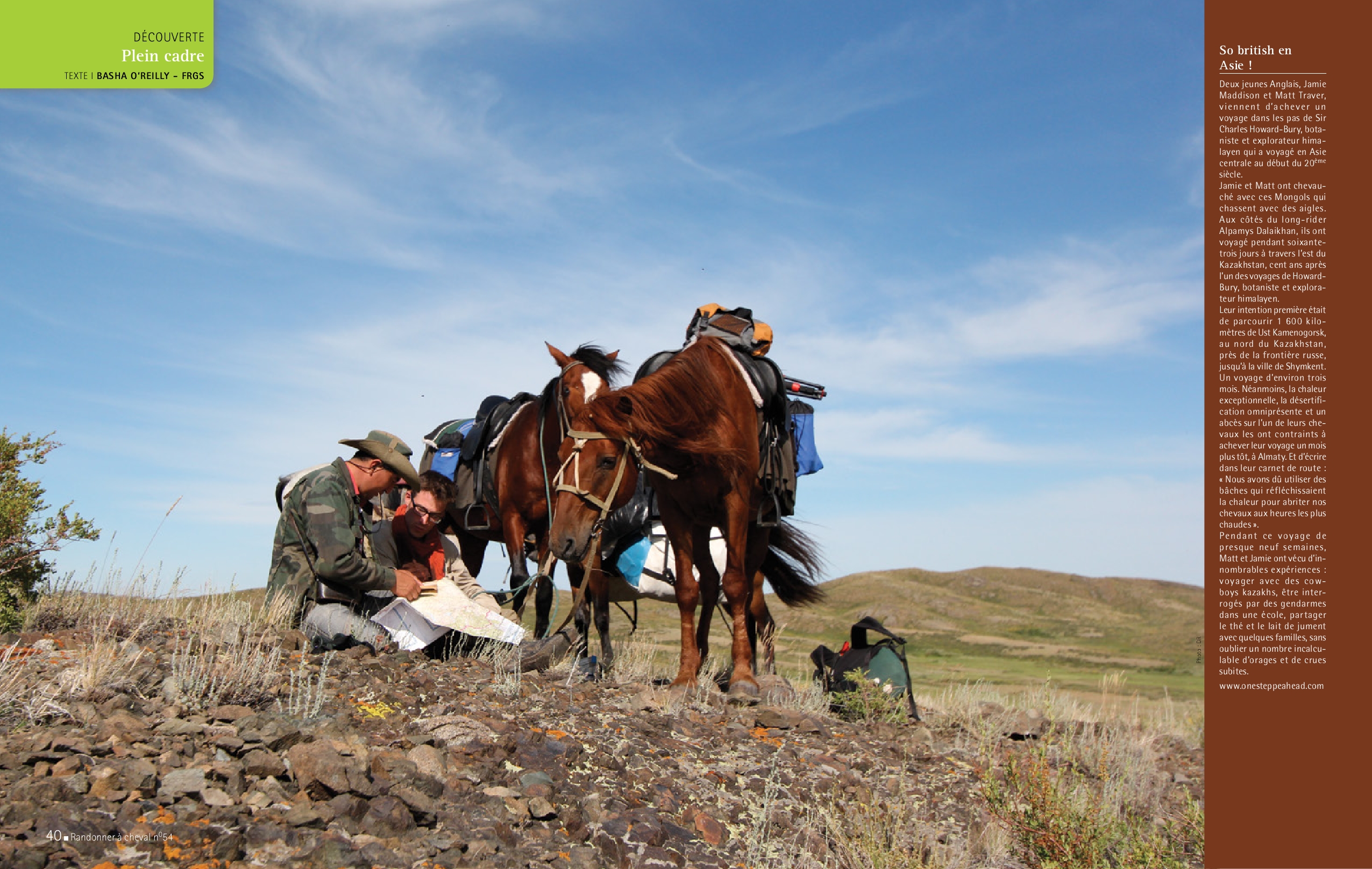 This is the first collection of articles to offer interviews with the world's important equestrian explorers, information regarding expeditions around the world and never-before-seen extracts from the Encyclopaedia of Equestrian Exploration. The articles were written by Basha O'Reilly, the international correspondent for Europe's leading equestrian travel magazine, Randonner à Cheval. Click on cover images to read her articles in French, or on one of the links below to read them in English. The French PDF files are quite large because of the magnificent images, so please be patient! Use your back button to return to this page.