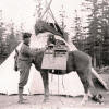 | The times they are a’changing. Basha travels with a military grade laptop and a Swiss army knife with a USB key. This photograph shows the first radio ever used in a major equestrian expedition, a 1923 exploration of the Canadian Rockies. |