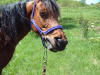 I decided that the way to reduce swelling is movement, and so I tacked him up and we set off. George's head was still too swollen to put his bridle on, but his head collar fitted, if snugly.