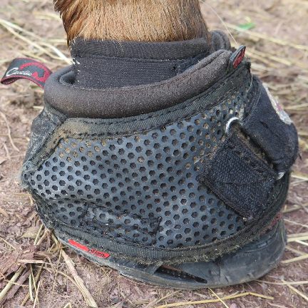 – Before putting on your hoof boot, check the toe. Often, it will be packed with mud, seeds or hardened debris, making the boot hard to put on