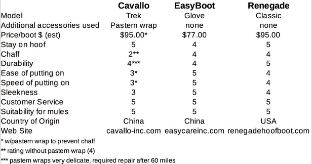 – an endorsement of any hoof boot company. Different boots work for different folks. We would have been happy taking any of the 3 boots tested on a long ride. The trick is to know the strengths and weaknesses of each boot.