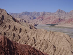From Taxkorgan our road followed the Taxkorgan river East across the Pamirs to its confluence with the muddy Yarkand River. From that point the main track travels north and south below sheer cliffs towards the desert by two separate routes. The road I was following was the less used of the two and led onto a further trail that later crossed from the high Pamirs into the mysterious Kunlun Shan beyond. The Pamirs border the western edge of the Taklamakan and the Kunlun Shan border the south. I secretly hoped that the road blockage was only temporary. Perhaps at the most I could divert around it.