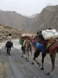No human, machine or camel train could make it across the divide. I still hoped to divert the caravan through a small village near the obstruction call Shartung but by 1830 that evening we hadn’t passed it yet. Workers at a mine yard told us Shartung lay up a narrow side valley an hour back down the road. It was already late so we pushed quickly to reach there by nightfall.