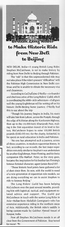 British Long Rider to make Historic Ride from New Delhi to Beijing
