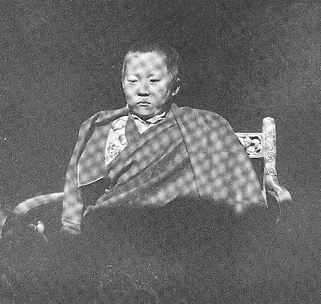A few feet away to his right, on a similar but lower throne, sat the dignified Regent of Tibet. Until the Dalai Lama becomes of age at eighteen, the Regent assumes his duties and is the highest authority in Tibet, ecclesiastical or civil.