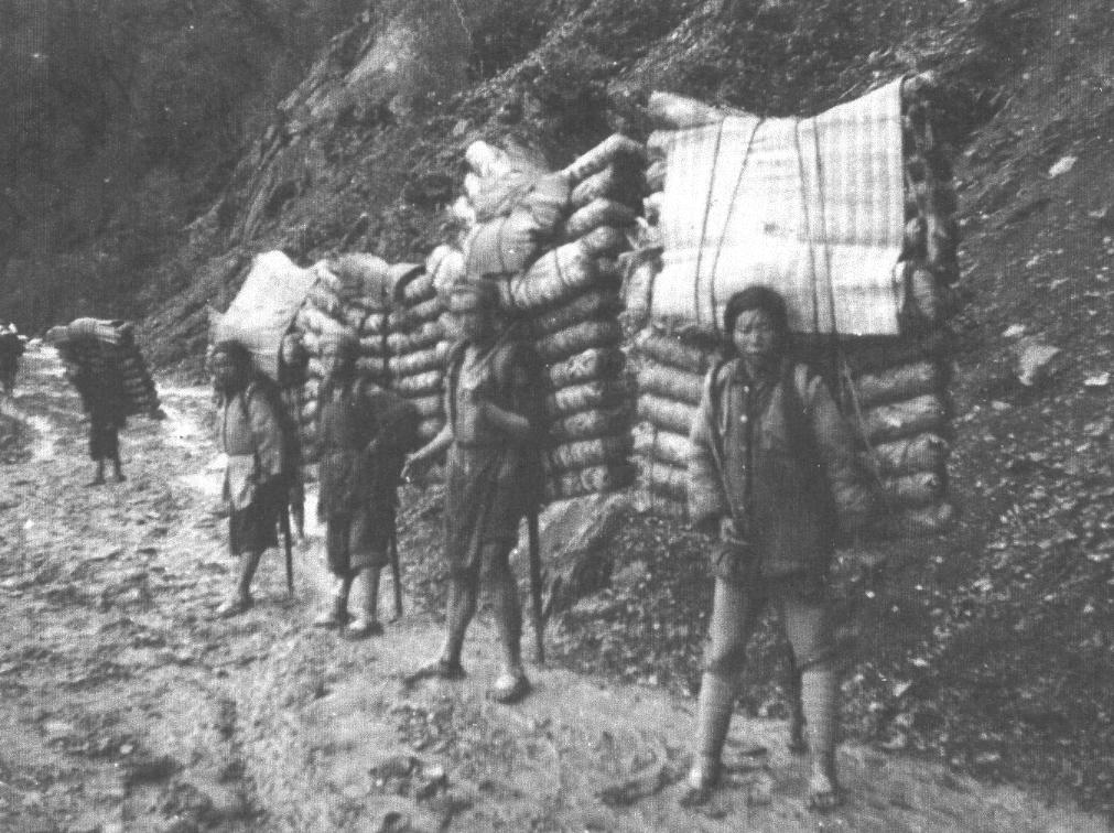 Though horses had a role to play on the return journey, it was displays of incredible human strength by heavily-laden porters carrying immense loads of tea into Tibet which set the tone for the outward journey.